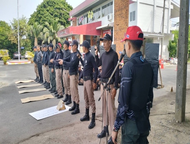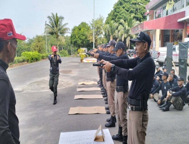 พ.ต.ท.กงกฤช ทองนุ่น รอง ผกก.ป.สภ.ช้างกลาง พ.ต.ท.วิชาญ รักพริก สวป.สภ.ช้างกลาง ร.ต.อ.ณัฐสิทธิ์ ทิพย์กองลาศ รอง สวป. สภ.ช้างกลาง ร.ต.อ.สุพจน์ คิดประเสริฐ รอง สวป.สภ.ช้างกลาง ร.ต.อพิชัย พรายอินทร์ รอง สว.สส.สภ.ช้างกลาง ครูฝึกประจำสถานี ได้นำข้าราชการตำรวจ สภ.ช้างกลาง ฝึกแถวประจำสัปดาห์การยิงปืนคอมแบทแฮนด์กัน เมื่อวันพุธ ที่ 11 ธันวาคม2567 เวลา 08.30 น.