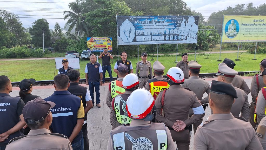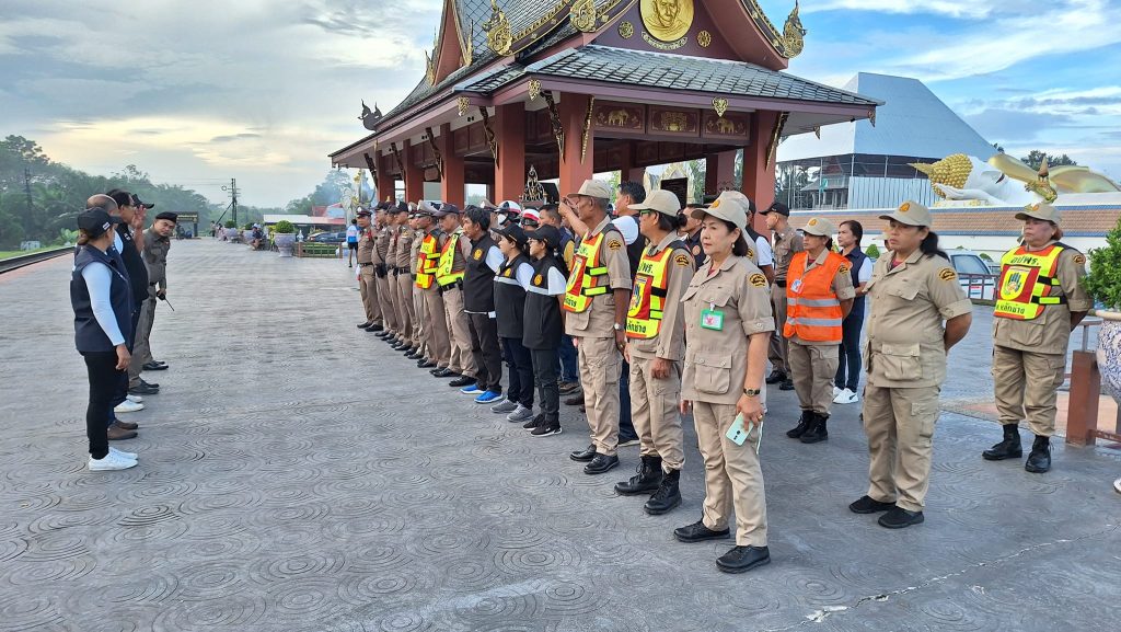 เจ้าหน้าที่ฝ่ายปกครอง กำนัน ผู้ใหญ่บ้าน อาสาสมัครร่วมปล่อยแถวรักษาความสงบเรียบร้อยและอำนวยความสะดวกด้านการจราจร การจัดงานทอดกฐินสามัคคี วัดธาตุน้อย ประจำปี 2566