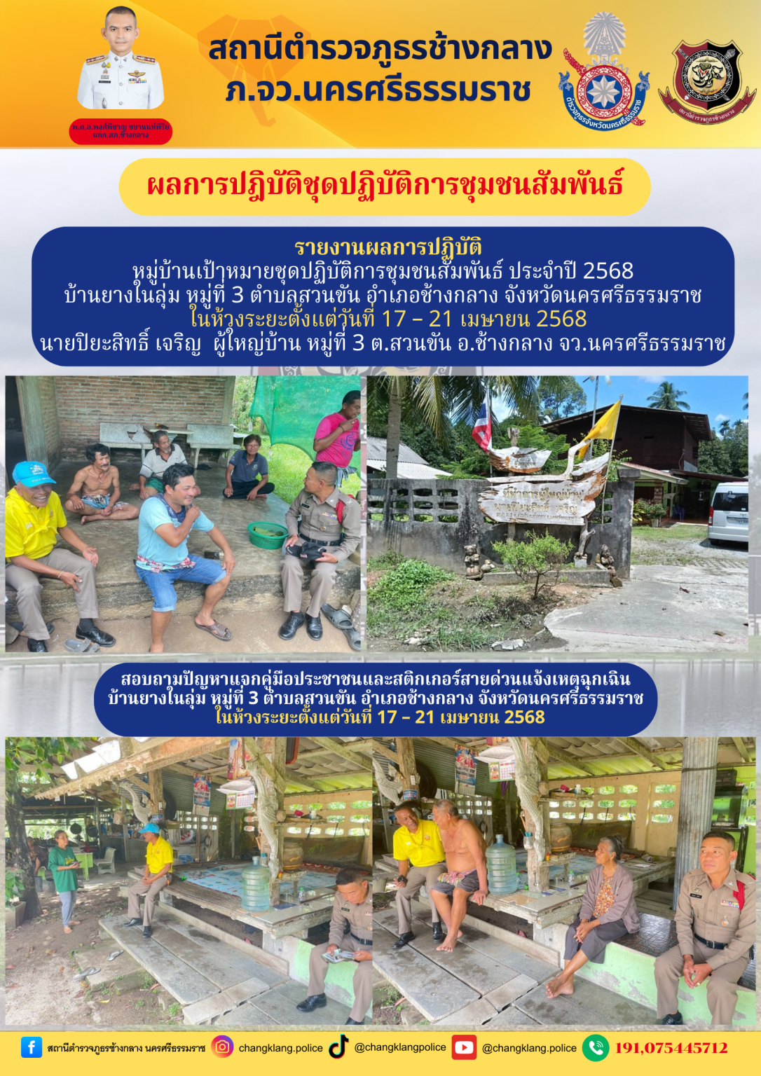 ผลการปฎิบัติชุดปฏิบัติการชุมชนสัมพันธ์ สภ.ช้างกลาง ประจำเดือน เมษายน 2568