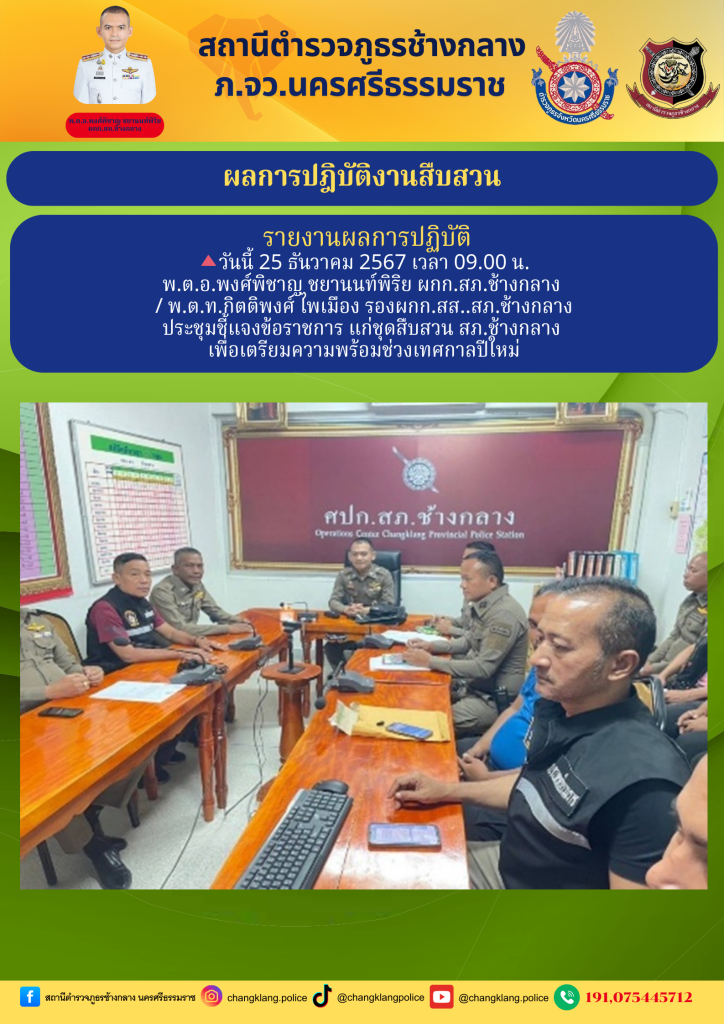 ประชุมชี้แจงข้อราชการ แก่ชุดสืบสวน สภ.ช้างกลาง