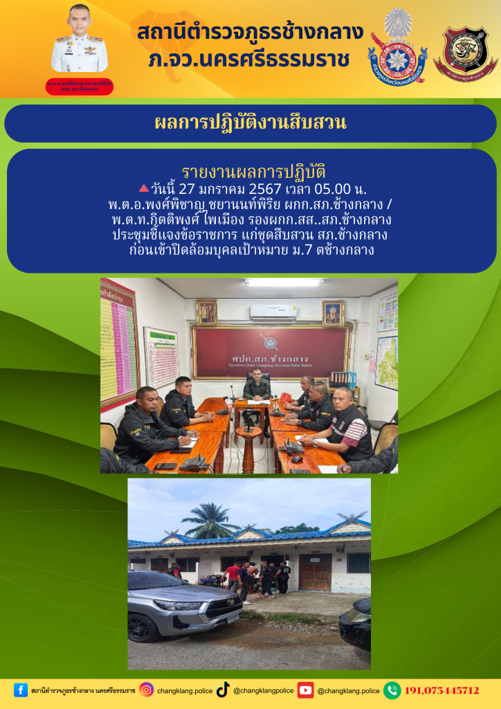 ประชุมชี้แจงข้อราชการ แก่ชุดสืบสวน สภ.ช้างกลาง