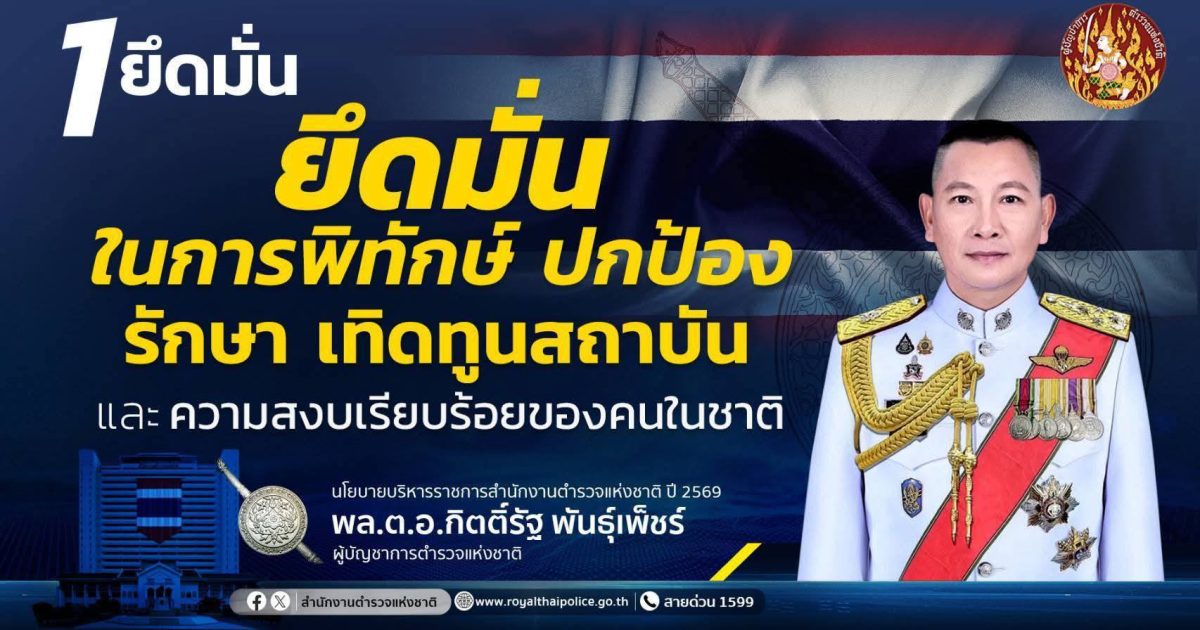 วันนี้ (1 ตุลาคม 2568) เวลา 15.00 น. พล.ต.อ.กิตติ์รัฐ พันธุ์เพ็ชร์ ผู้บัญชาการตำรวจแห่งชาติ (ผบ.ตร.) มอบนโยบายบริหารราชการสำนักงานตำรวจแห่งชาติ ประจำปีงบประมาณ พ.ศ.2569 แก่ข้าราชการตำรวจผู้นำหน่วยระดับผู้บัญชาการหรือเทียบเท่า จำนวน 44 นาย และระดับผู้บังคับการหรือเทียบเท่า จำนวน 294 นาย รวม 338 ณ ห้องแจ้งยอดสุข ชั้น 3 อาคารศูนย์ฝึกอบรมพัฒนาบุคลากรและสวัสดิการ สำนักงานตำรวจแห่งชาติ