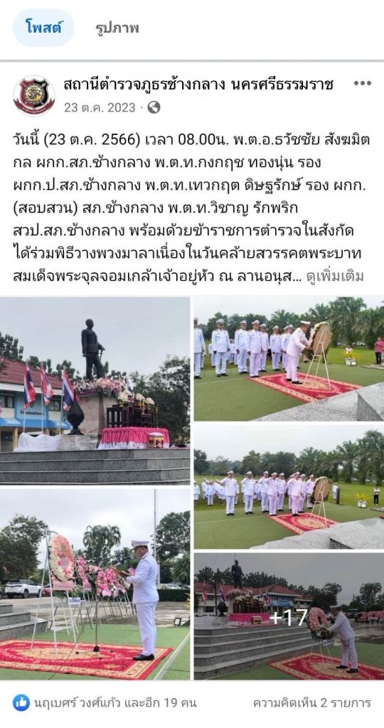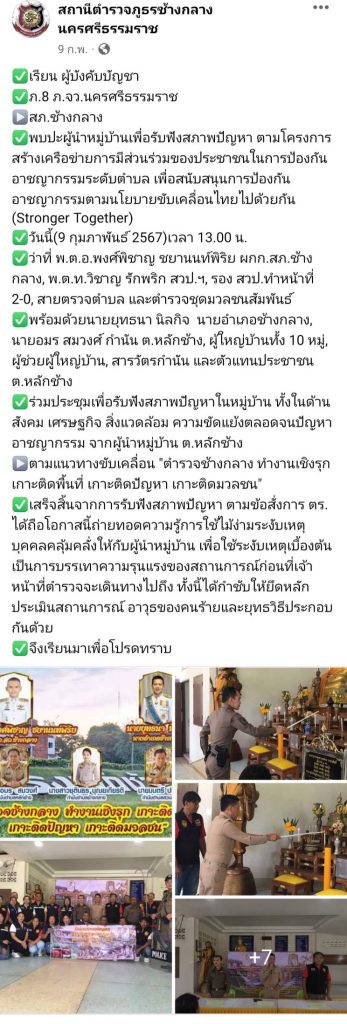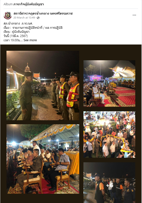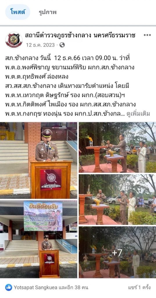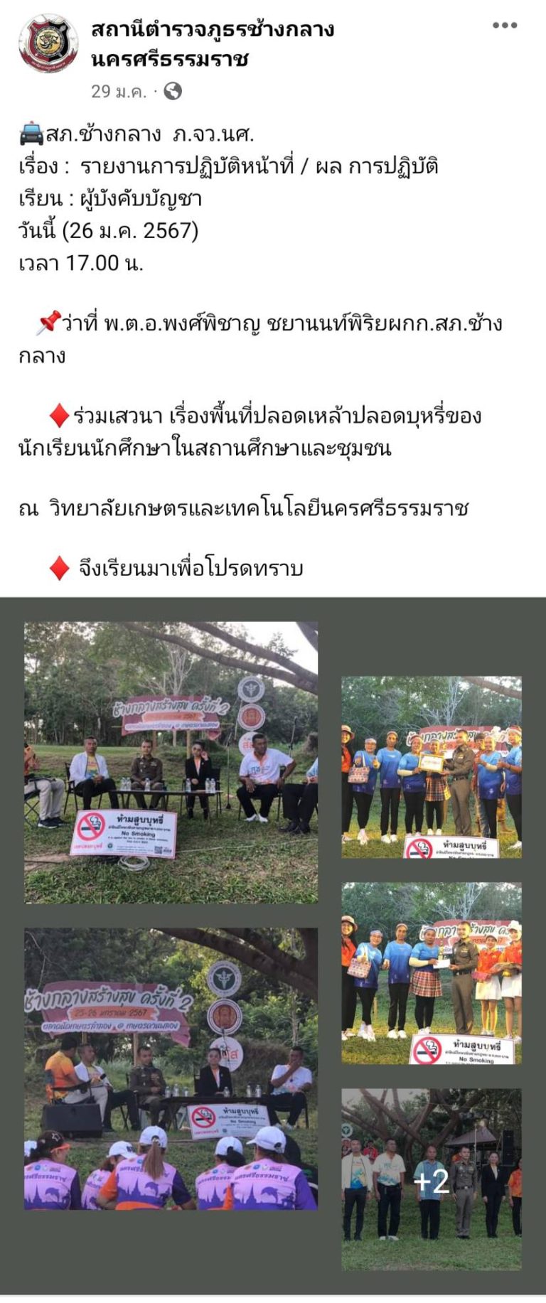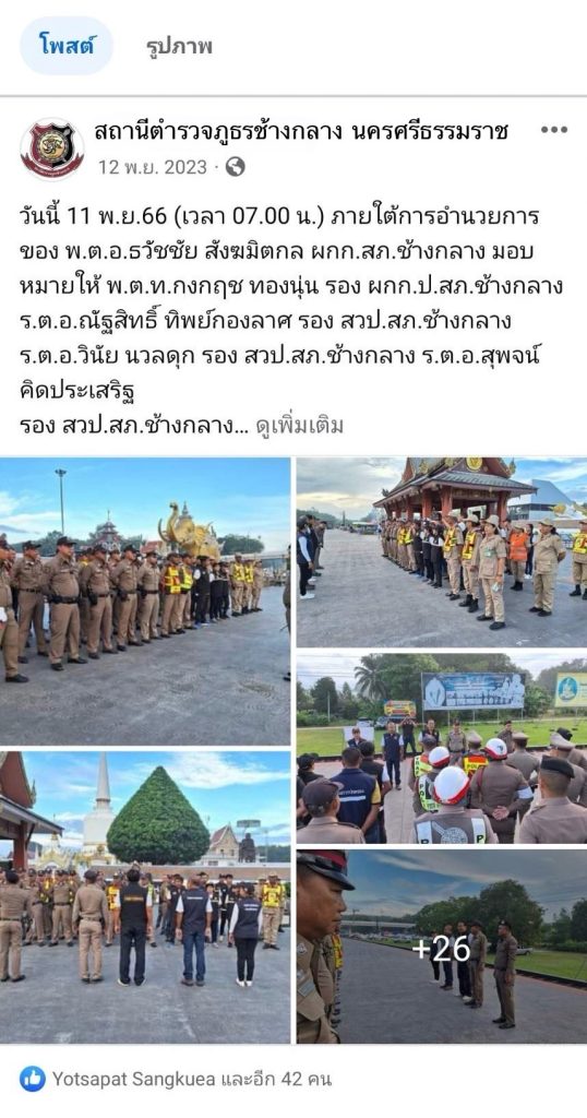 เผยแพร่บนเพจ Facebook ของสถานีตำรวจภูธรช้างกลาง