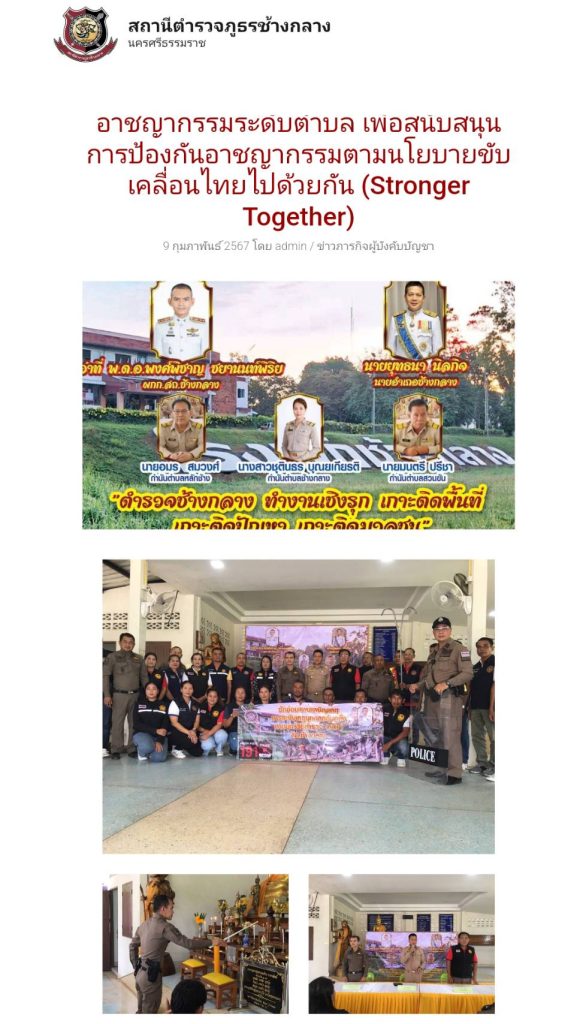 เผยแพร่บนเว็บไซต์ของสถานีตำรวจภูธรช้างกลาง