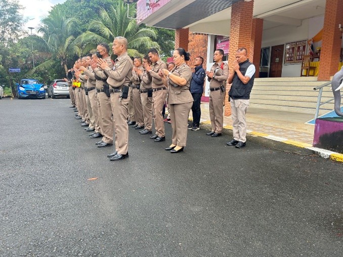 วันที่  28 ต.ค.67 เวลา 08.00 น.  พ.ต.ท.เทวกฤต  ดิษฐรักษ์  รอง ผกก(สอบสวน).สภ.ช้างกลาง รักษาราชการแทน  ผกก.สภ.ช้างกลาง   ได้เรียกข้าราชการตำรวจในสังกัดเพื่อเคารพธงชาติ สวดมนต์ไหว้พระ ท่องอุดมคติตำรวจ บทปลงใจ กล่าวคำสัตย์ปฏิญาณในตอนเช้าและชี้แจงข้อสั่งการของผู้บังคับบัญชา พร้อมนี้ได้เน้นย้ำการแต่งกายเครื่องแบบและทรงผม ร่วมถึงความพร้อมในการปฏิบัติหน้าที่ก่อนออกปฏิบัติงาน