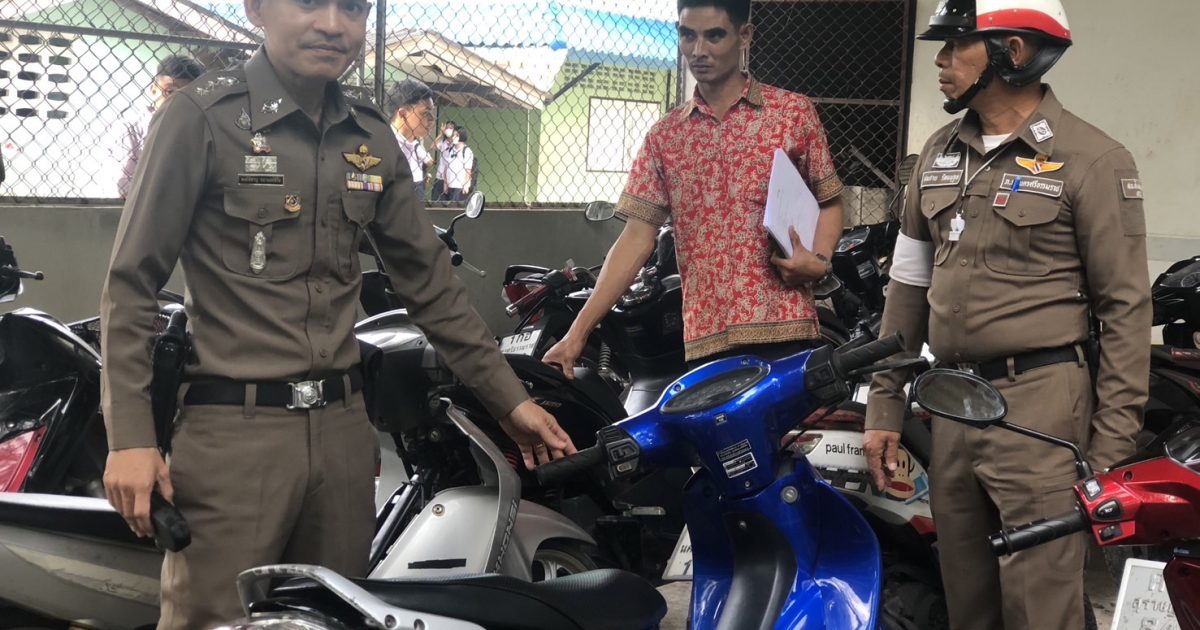 สุ่มตรวจโรงจอดรถจักรยานยนต์ที่นักเรียนโรงเรียนช้างกลางประชานุกูล ได้ขับขี่มาโรงเรียน