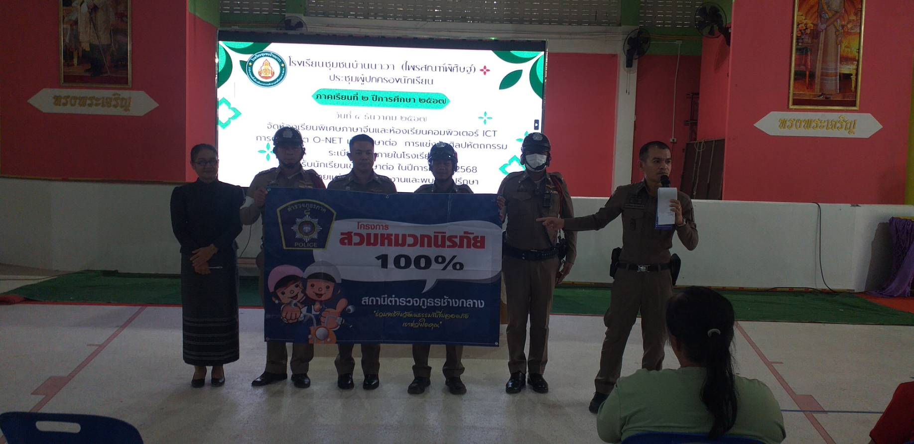14ธ.ค67 ผกก.รองผกกป.พร้อม จนท.จร. ให้ความรู้โครงการสวมหมวกนิรภัยแก่ นร.ชุมชนบ้านนาวา