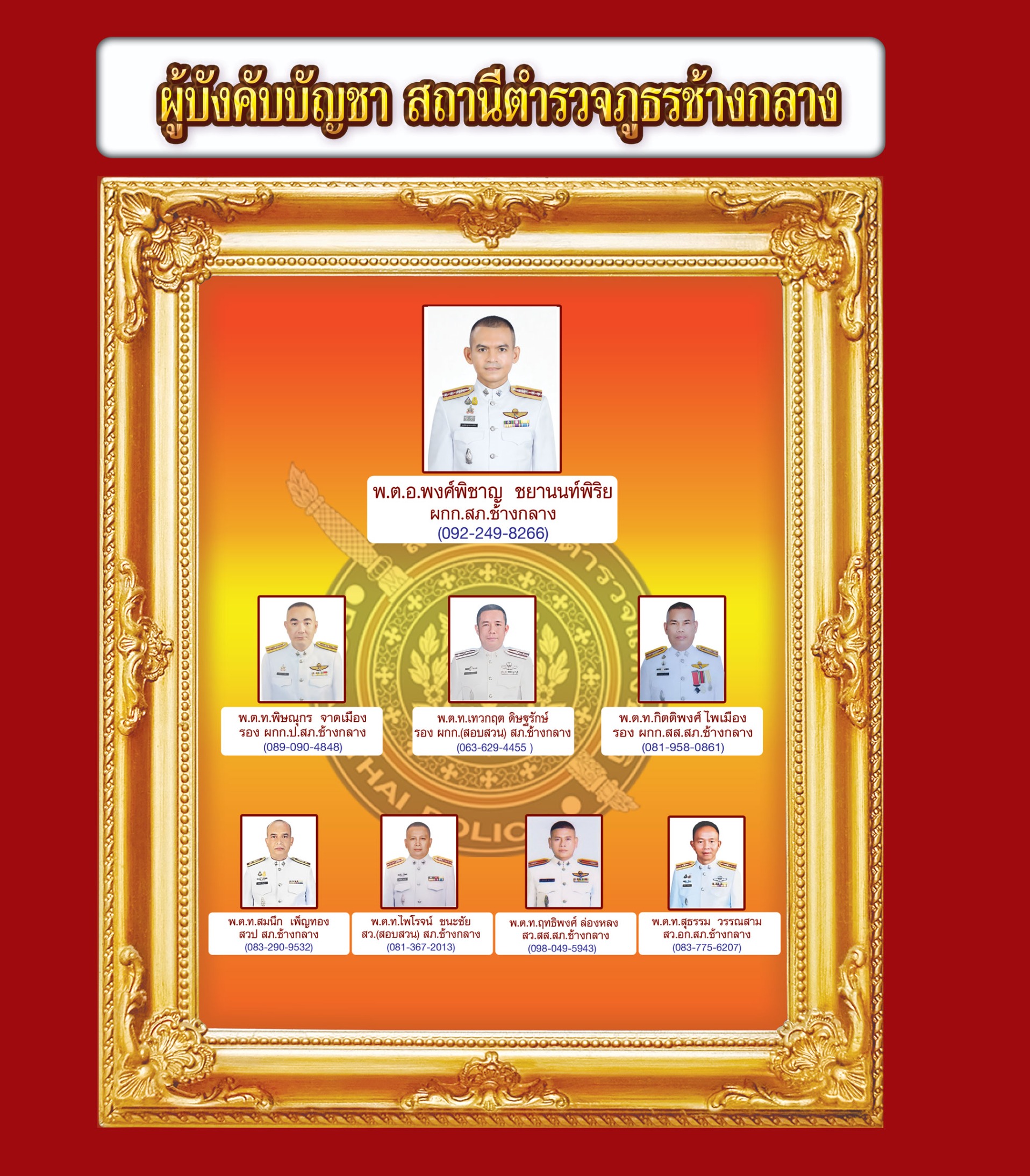 ข้อมูลผู้บังคับบัญชา สถานีตำรวจภูธรช้างกลาง