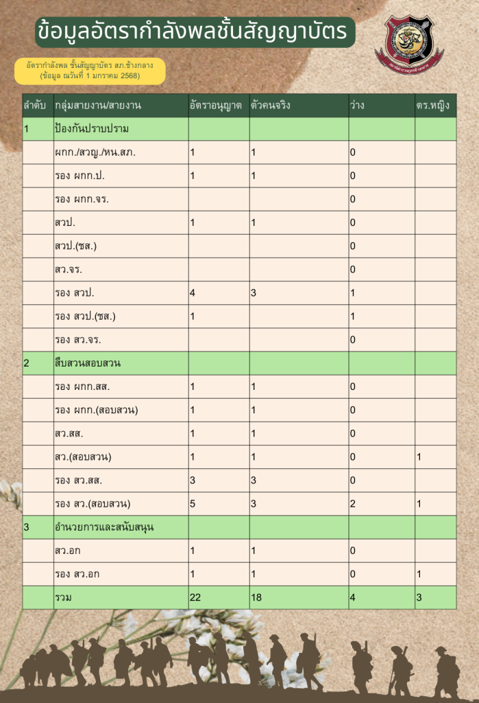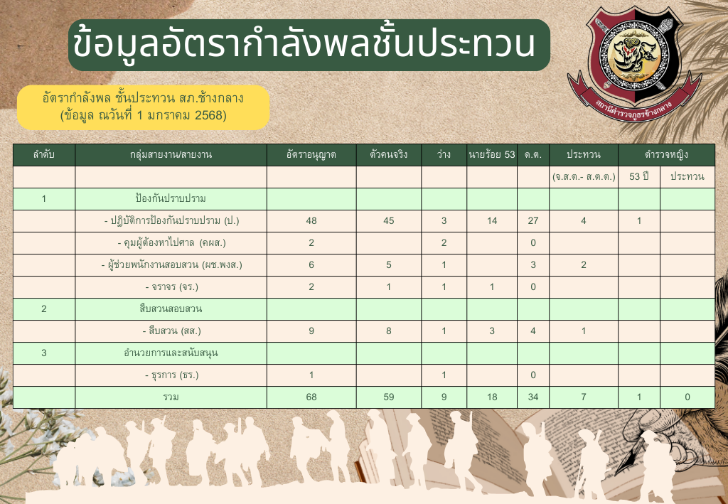 ข้อมูลอัตรากำลัง ชั้นประทวน สถานีตำรวจภูธรช้างกลาง