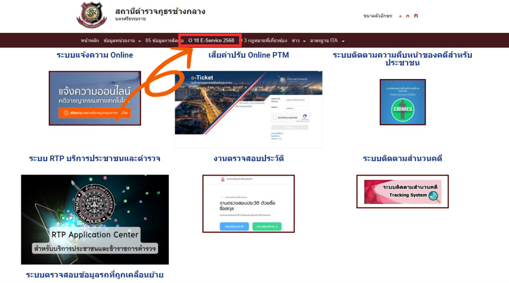 E-Service แสดงไว้หน้าแรกของเว็บไซต์หลัก ของ สภ.ช้างกลาง